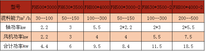 2、功率消耗小,混合每立方粉料耗能小于0.16km/h。(表1)
