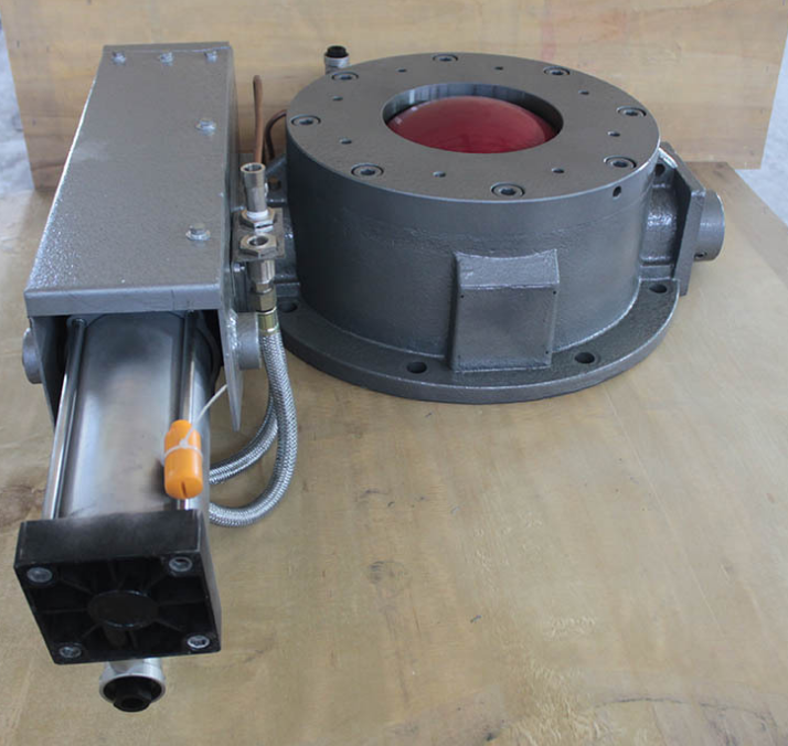 圆顶阀为铸钢壳体结构,内部安装有带有两个镀铬转轴,连接可旋转的铸钢半圆球顶,气缸推动球顶作90°往复旋转,达到开启和关闭的要求。