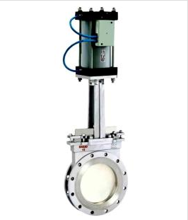 气动刀型闸阀是用气动执行器控制阀门,从而实现阀门的开和关的一种阀门。其可分为上下两部分,上半部分为气动执行器,下半部分为阀门。超薄型的刀闸阀以其体积小、流阻小、重量轻、易安装、易拆卸等优点透彻解决了普通闸阀、平板闸阀、球阀、截止阀、调节阀、蝶阀等类阀门的流阻大、重量大、安装难、占地面积大等的疑难问题。刀闸阀出现后,大量的通用切断类阀门和调节阀门已被之取代。